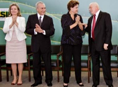 Os novos ministros da Educação, Aloizio Mercadante, e da Ciência e Tecnologia, Marco Antônio Raupp, tomam posse na tarde desta terça-feira (24) no Palácio do Planalto. O petista troca a pasta de Ciência e Tecnologia pela Educação, onde substituirá Fernando Haddad – pré-candidato do PT à prefeitura de São Paulo. O ex-presidente Lula participa da cerimônia. Segundo o Globo, a presidente Dilma o recepcionou na garagem e os dois foram cumprimentados e tiraram fotos com servidores por aproximadamente dez minutos. Antes da solenidade, o ex-presidente foi aplaudido de pé por ministros e convidados. “Eu estou muito emocionada com a volta do Lula ao Planalto”, afirmou Dilma. Mesmo em tratamento contra um câncer na laringe, Lula foi até Brasília para acompanhar a despedida de Haddad. Este é o seu primeiro evento político desde o diagnóstico da doença, em novembro do ano passado.